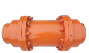 WGT接中間套鼓形齒式聯(lián)軸器在工作時,兩軸產(chǎn)生相對角位移,內(nèi)外齒的齒面周期性作軸向相對滑動,必然形成齒面磨損和功率消耗,因此,齒式聯(lián)軸器需在有良好和密封的狀態(tài)下工作。齒式聯(lián)軸器徑向尺寸小,承載能力大,常用于低速重載工況條件的軸系傳動,高精度并經(jīng)動平衡的齒式聯(lián)軸器可用于高速傳動。