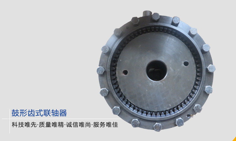 5、傳動(dòng)效率高達(dá)99.7%。 基于經(jīng)上特點(diǎn),國內(nèi)外已普遍以鼓形齒替代直齒式聯(lián)軸器。鼓形齒式聯(lián)軸器,其剛性大,有撓性,無彈性,故不適宜用于要求減振、緩沖及二軸對(duì)中要求嚴(yán)格的機(jī)械。