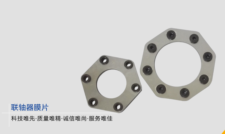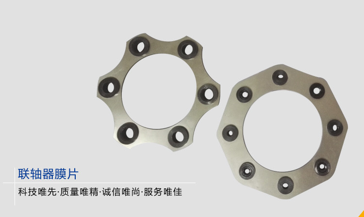 聯(lián)軸器膜片由幾組膜片(不銹鋼薄板)用螺栓交錯(cuò)地與兩半聯(lián)軸器聯(lián)接,每組膜片由數(shù)片疊集而成,膜片分為連桿式和不同形狀的整片式。膜片聯(lián)軸器靠膜片的彈性變形來補(bǔ)償所聯(lián)兩軸的相對(duì)位移,是一種高性能的金屬強(qiáng)元件撓性聯(lián)軸器,不用潤油,結(jié)構(gòu)較緊湊,強(qiáng)度高,使用壽命長,無旋轉(zhuǎn)間隙,不受溫度和油污影響,具有耐酸、耐堿防腐蝕的特點(diǎn),適用于高溫、高速、有腐蝕介質(zhì)工況環(huán)境的軸系傳動(dòng)。