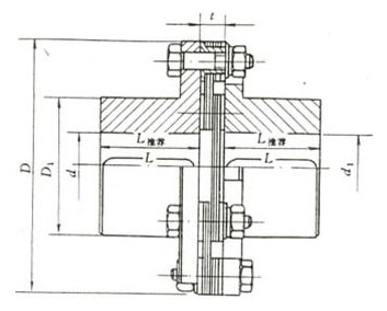 膜片聯(lián)軸器的彈性元件由很薄的不銹鋼膜片疊合成的膜片組件,膜片通常有束腰型,多邊環(huán)形等形狀,處于同一分布圓上的精密螺栓分別與主從動(dòng)法蘭聯(lián)接。膜片組件以三維變形形式承受主從動(dòng)法蘭的不對(duì)中。