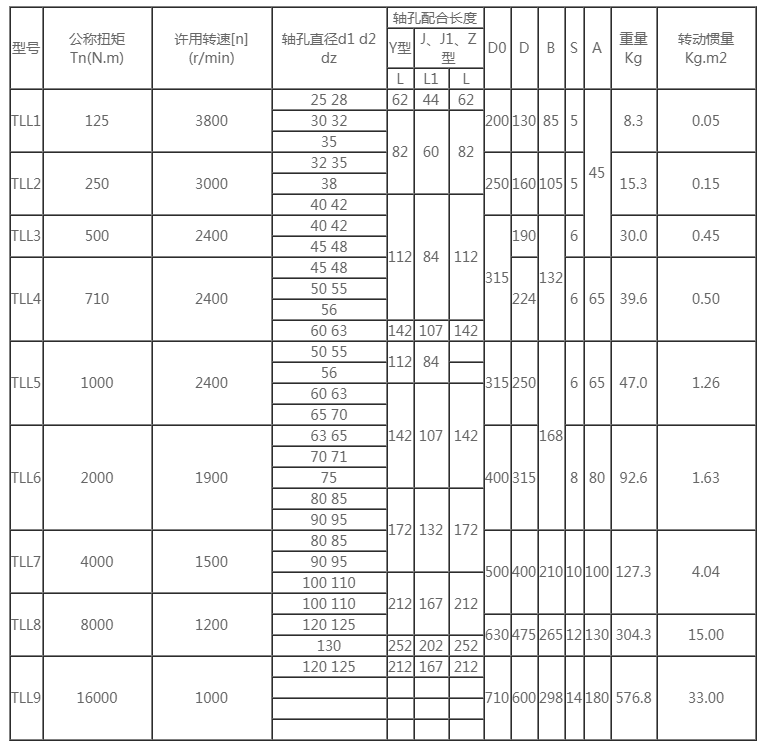 TLL型帶制動(dòng)輪彈性套柱銷聯(lián)軸器結(jié)構(gòu)比較簡單,制造容易,不用潤滑,不需要與金屬硫化粘結(jié), 換彈性套方便,不用移動(dòng)半聯(lián)軸器,具有一定補(bǔ)償兩軸相對偏移和減振緩沖性能。彈性套工作是受壓縮變形,由于彈性套的厚度較薄,體積小,彈性變形有限,所以彈性套柱銷聯(lián)軸器雖可補(bǔ)償軸線位移和彈性,但軸線位移許用補(bǔ)償量較少,彈性較弱