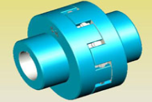它主要由兩個(gè)半聯(lián)軸器、彈性體、擋圈三種零件組成。兩個(gè)半聯(lián)軸器爪間隔地相互插在一起,使相鄰兩爪間形成一圓柱孔,在圓柱孔內(nèi),徑向放置圓柱形彈性體,然后套上擋圈以防彈性體在聯(lián)軸器轉(zhuǎn)動(dòng)時(shí)因離心力而甩出,扭矩是通過彈性體受壓傳 遞的。這種聯(lián)軸器易損 件是彈性體,當(dāng)彈性體需要 換時(shí),不需移動(dòng)半聯(lián)軸器,只需將擋圈軸向移動(dòng)便可實(shí)現(xiàn),大大方便了安裝和維修,特別適用于結(jié)構(gòu)復(fù)雜的中